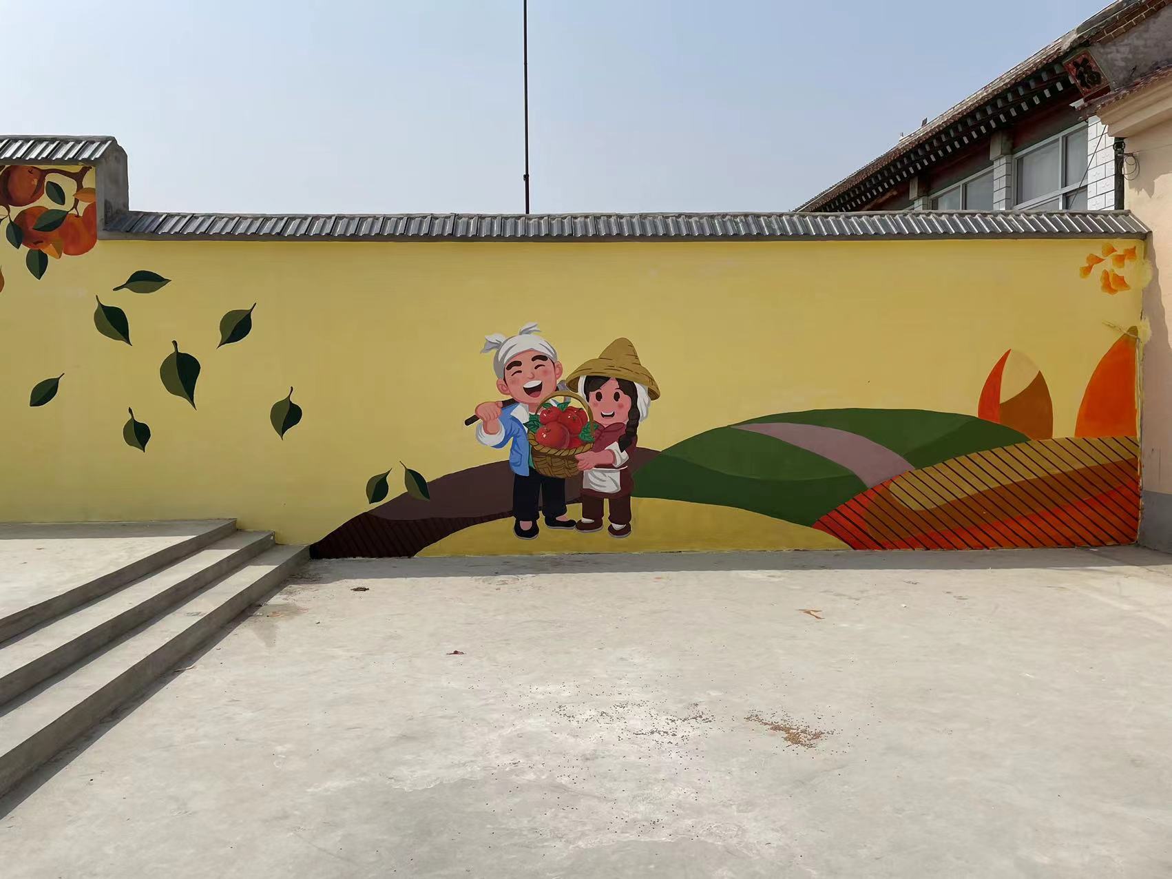 今日艺术教院大众艺术教导部李波传授、大众艺术熏陶部教工党收部刘洋、刘梁、刘东3实党员老师指挥12逻辑学死长远蓟州区停仓镇年夜恩庄,经由过程本身的绘笔画便新乡下扶植的转变,用墙体彩画的体例帮力奇丽村落扶植。
