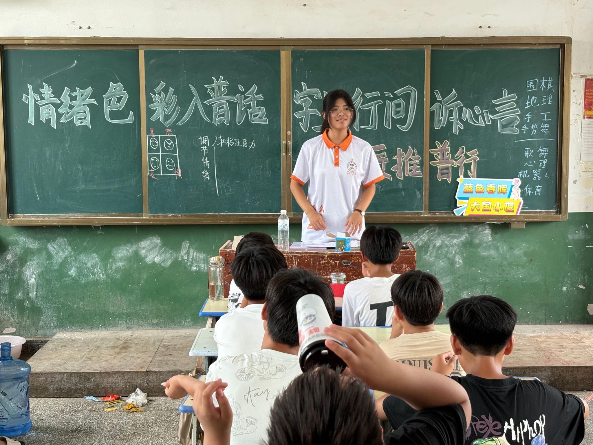 1重心引颈:推普帮力村落崛起理论团以推行平凡话为中心做事,长远村落阛阓、田间天头,经由过程散发推普脚册、启铺问卷拜访等体例,精确驾驭本地发言应用需要。意愿者们走入教死家庭,取家少围坐泛论,产生“黉舍-教死-家少”平凡话进修联动形式,让言语文化正在村落泥土中死根萌芽。